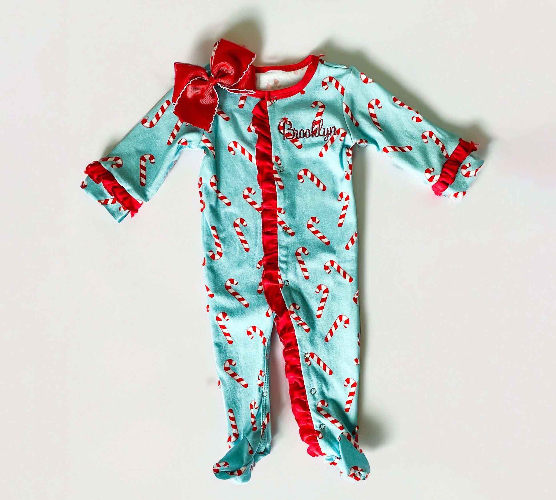 Look no further than these adorable candy cain print ruffle Christmas pajamas!