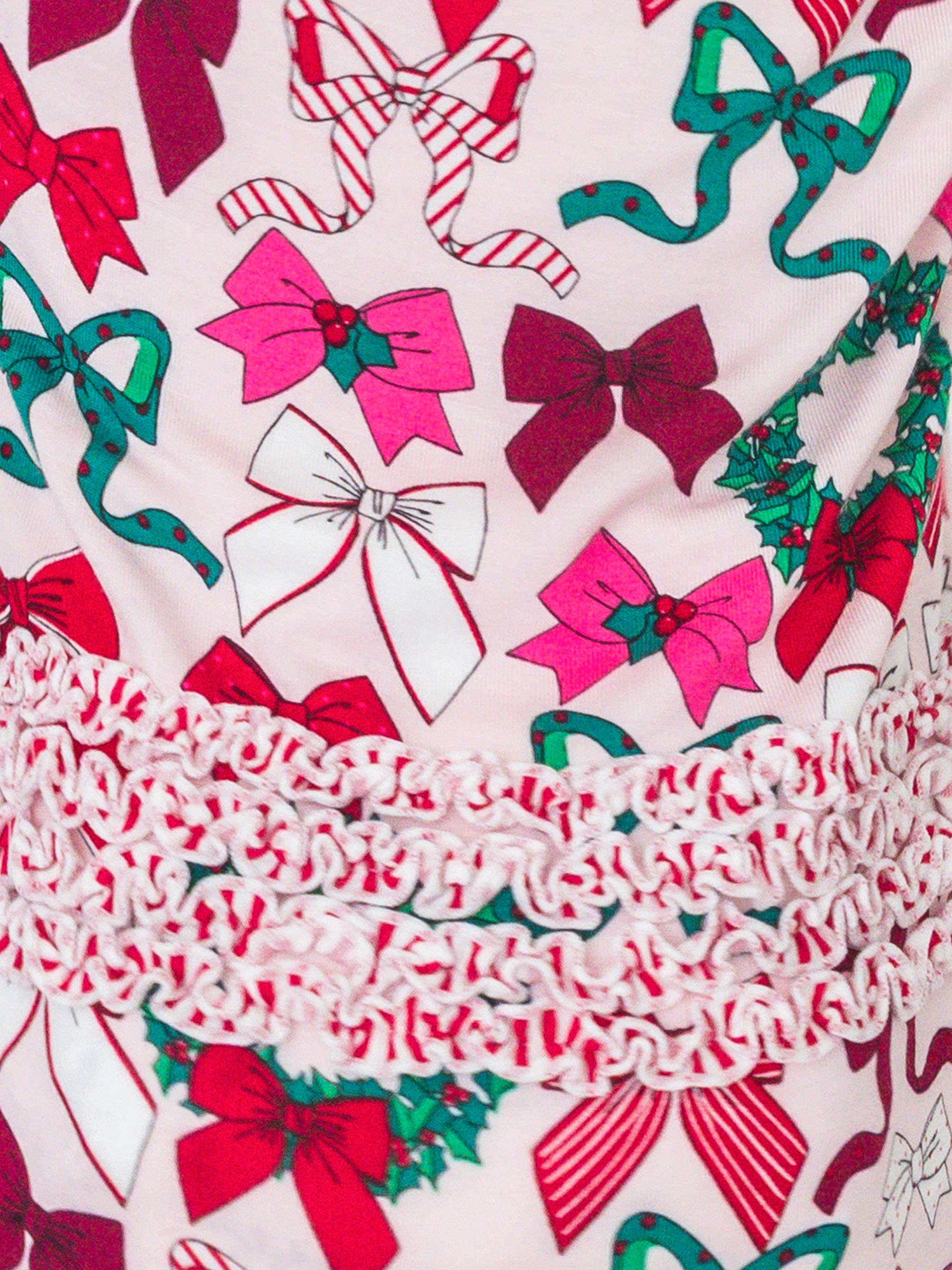 Baby Girls Bamboo Viscose Holly Bows Convertible Ruffle One Piece Footie Pajama