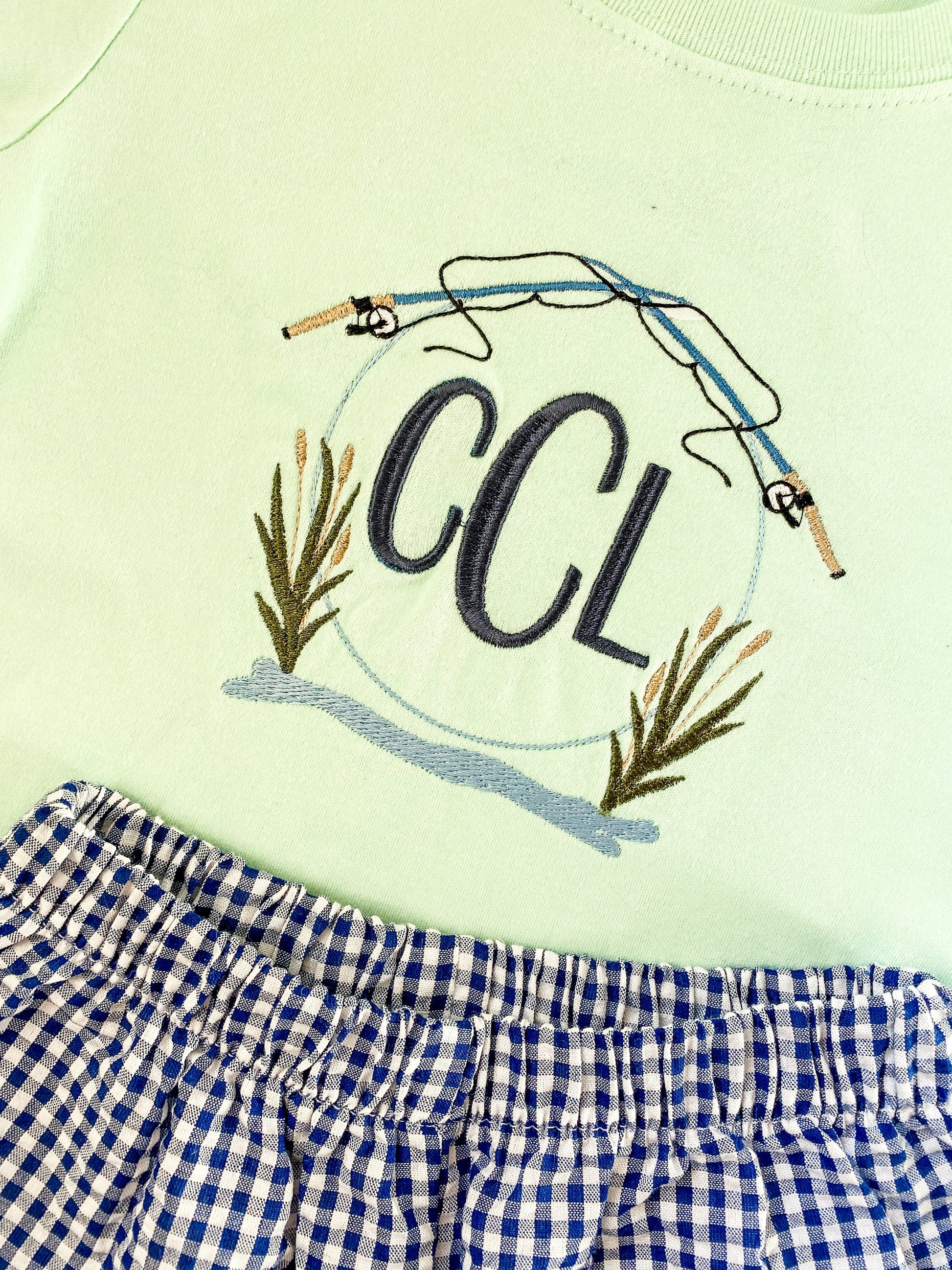 Surprise the little man in your life with a unique and personalized gift with this boy's monogrammed custom fishing shirt and short set.