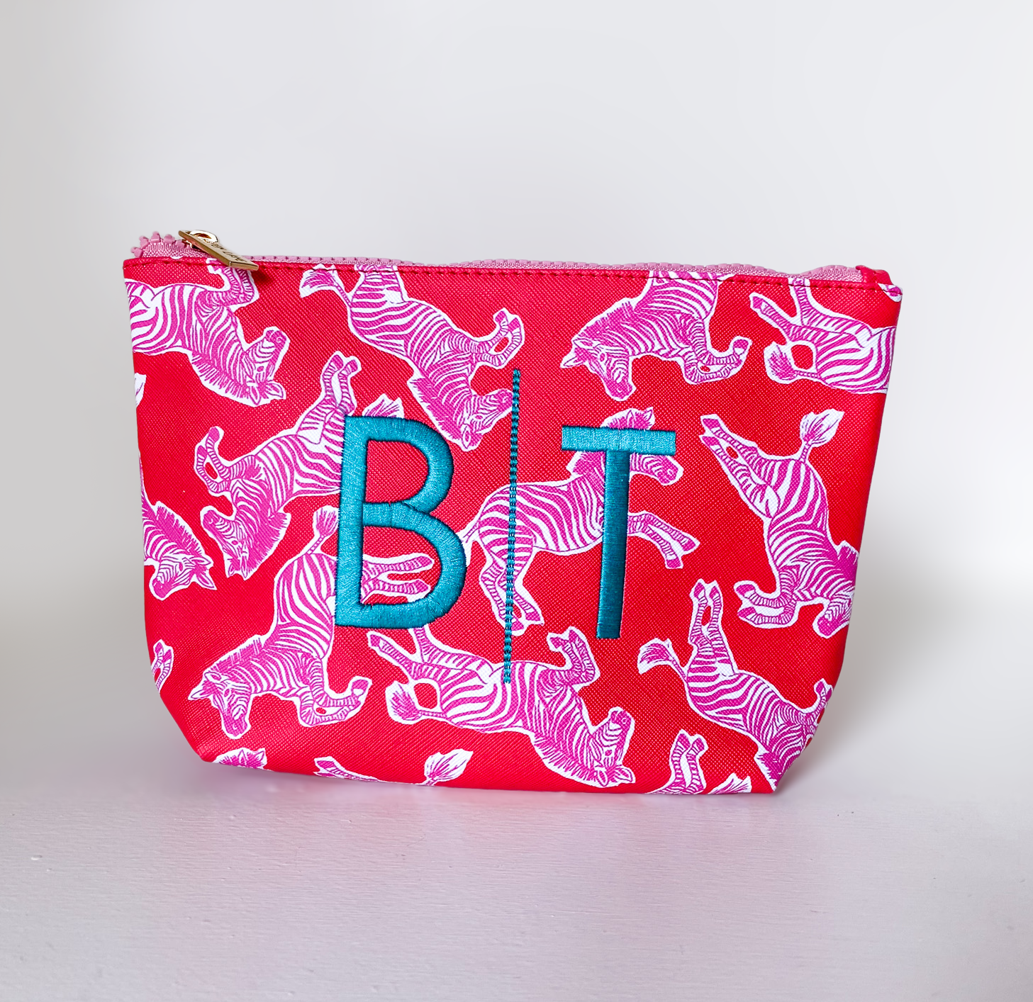 Cutest zebra colorful cosmetic pouch-perfect for preppy and colorful gifting, Easter, Mother's Day, stocking stuffers, gifts for mom and girlfriend gifting sections.
