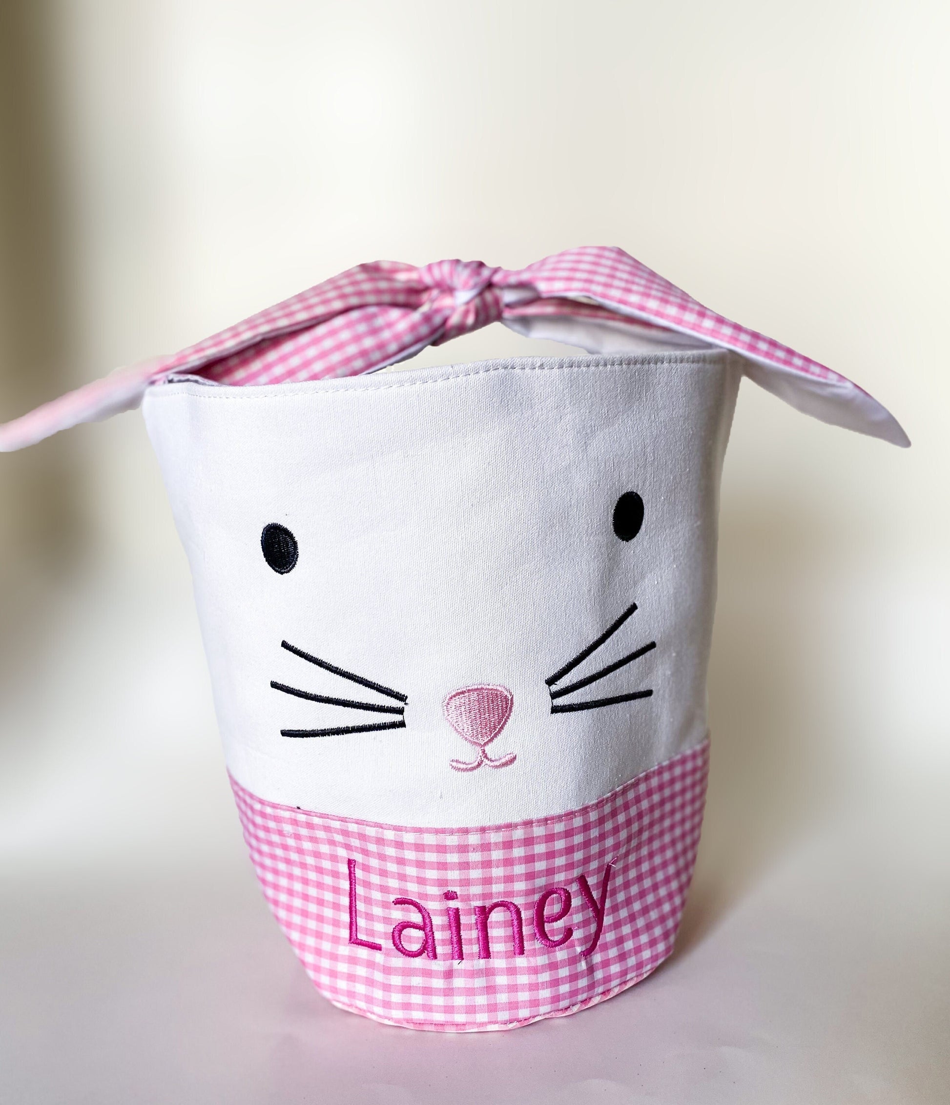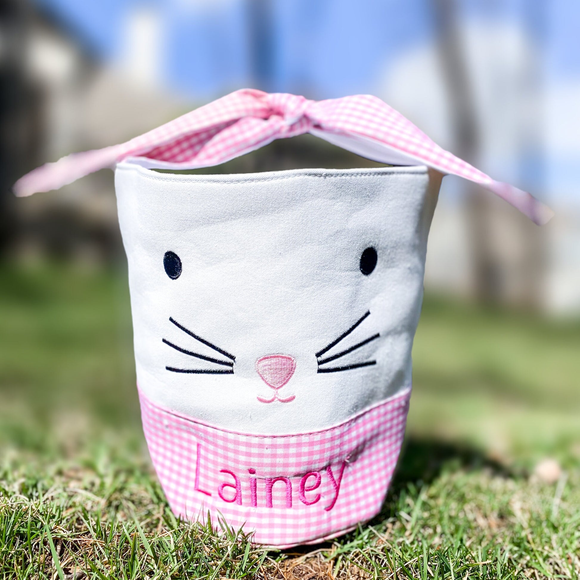 Easter Basket, Rabbit Ear, Custom Monogrammed, Personalized, Name, Bunny, Grossgrain