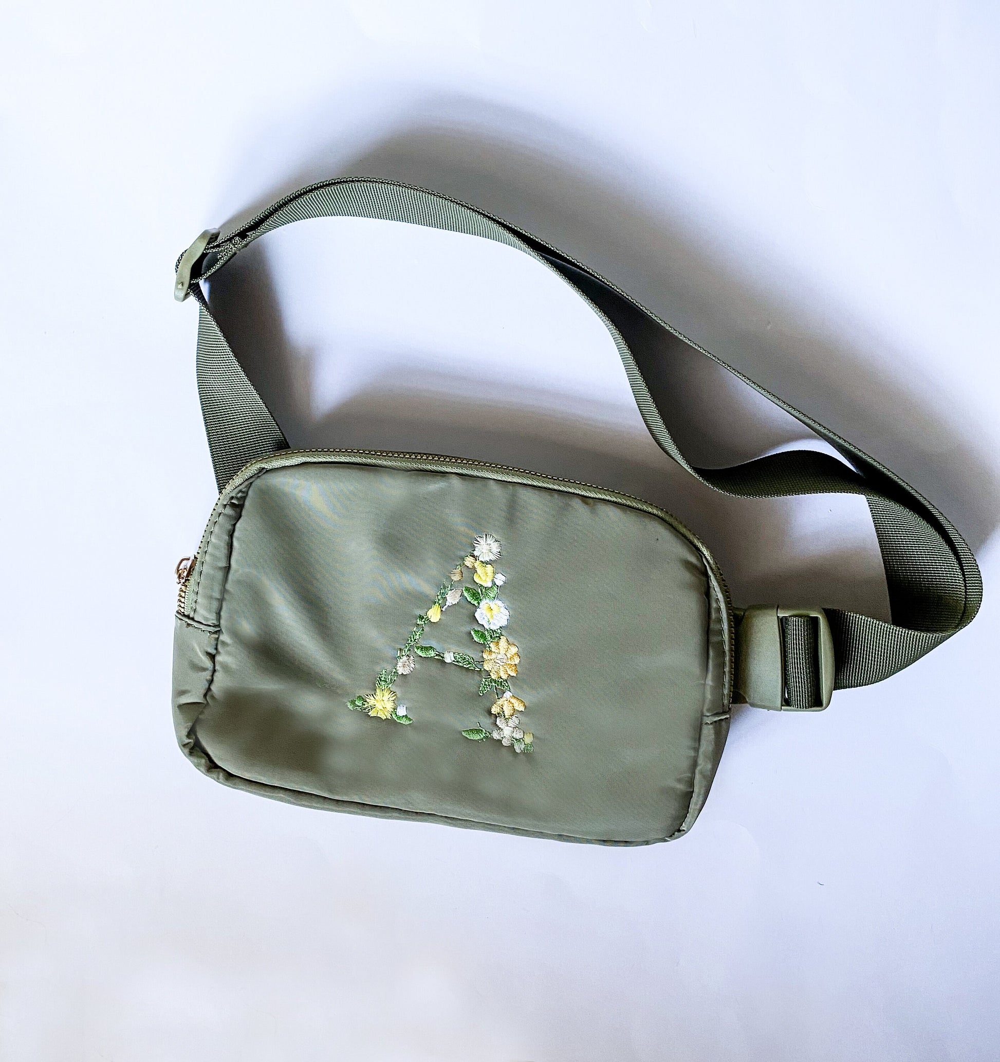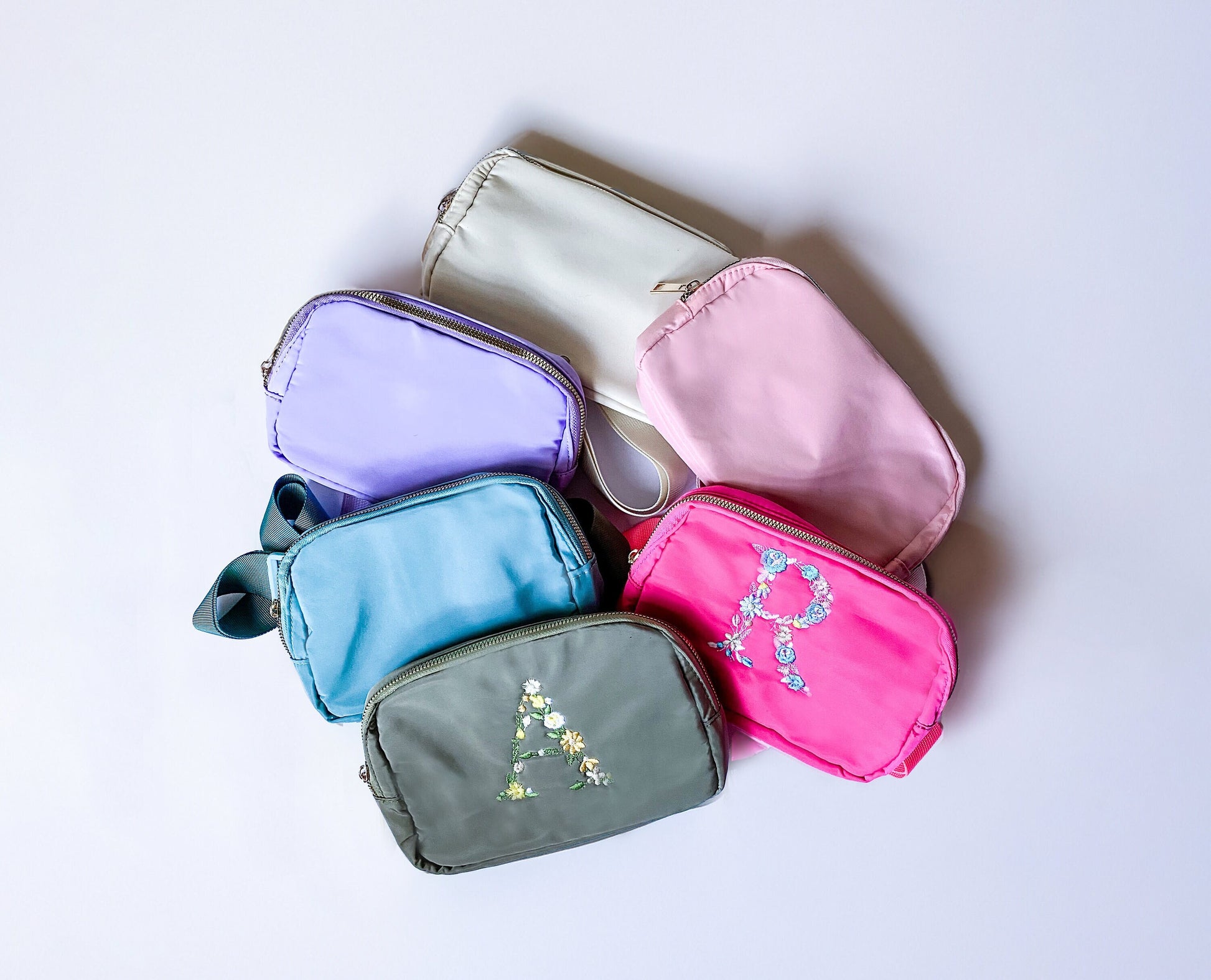 Stay stylish and hands-free with our trendy multicolored flower monogrammed initial belt bag!