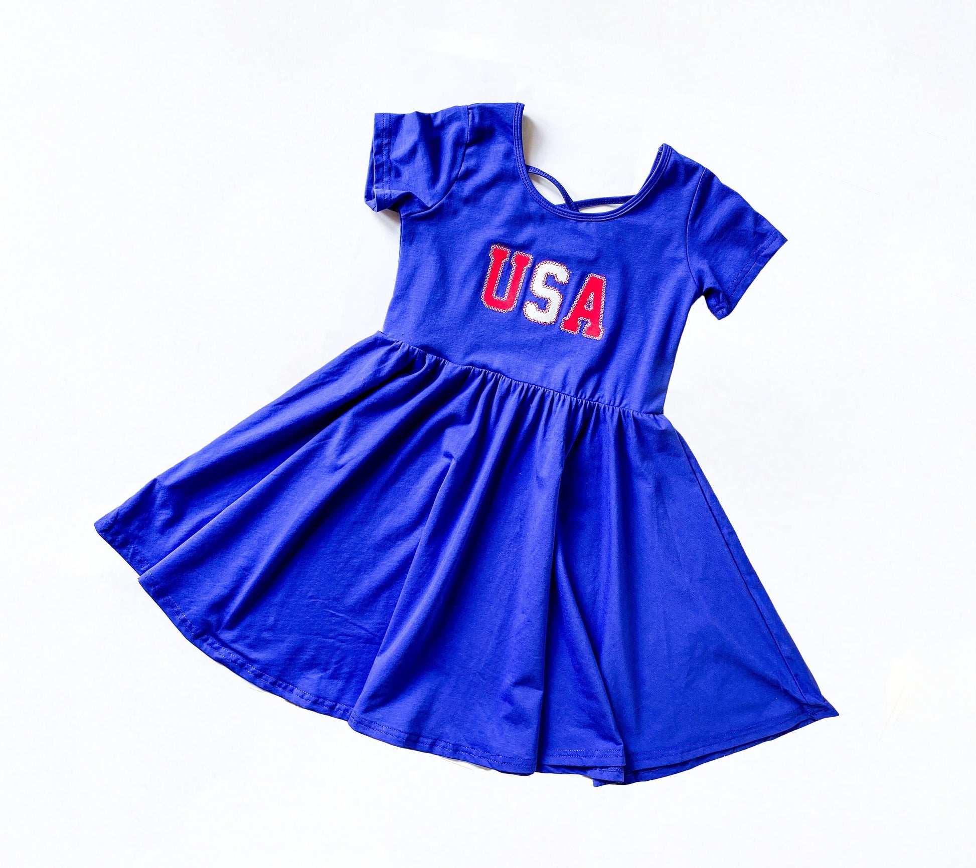 Made in the USA, this stylish dress is perfect for any Fourth of July celebration.