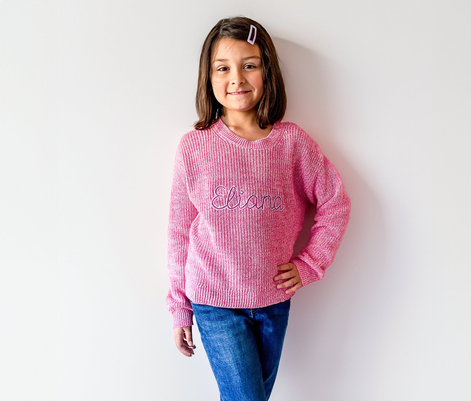 The girls customized felted letter knit sweater is perfect for your special girl.