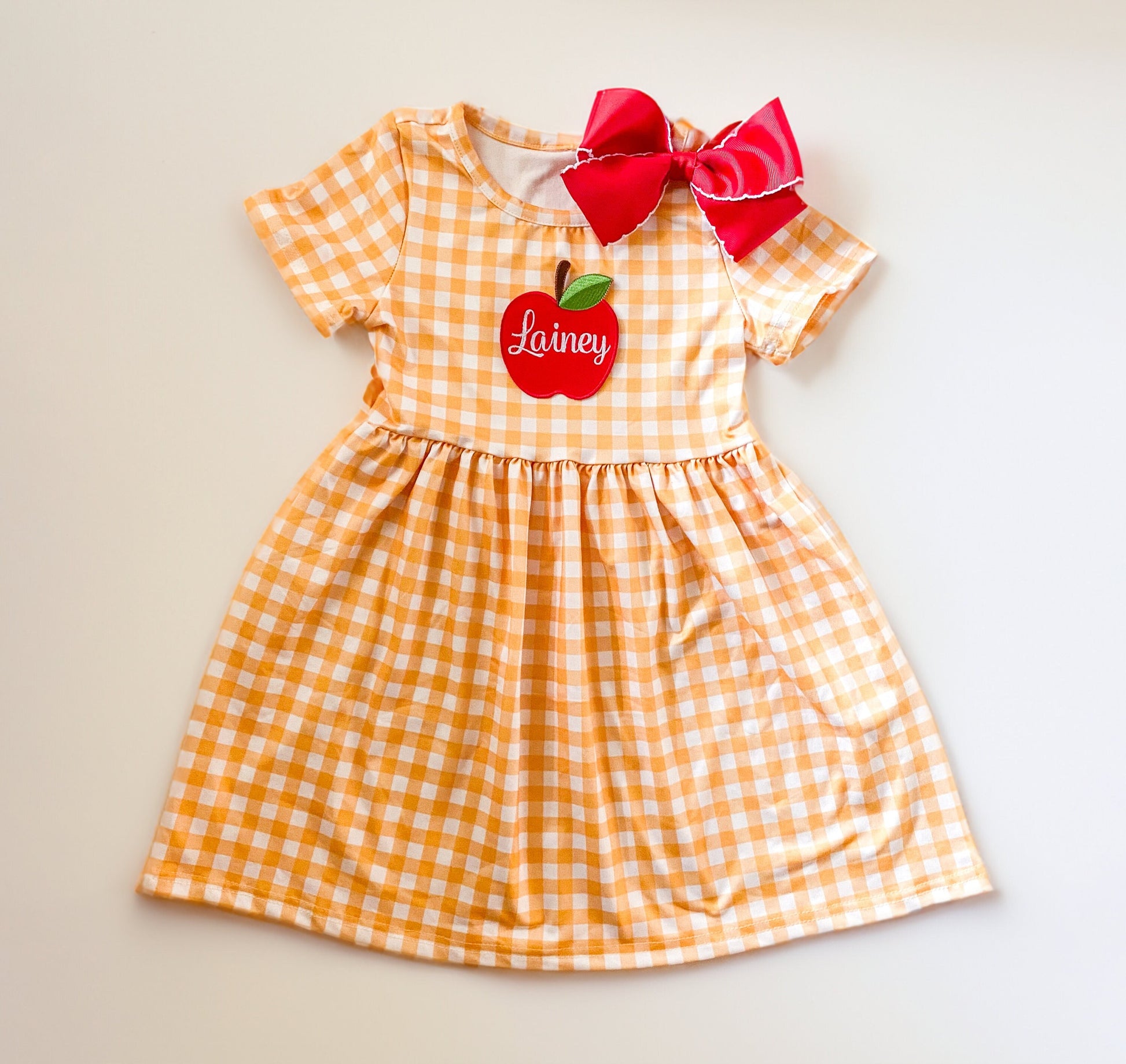 This girl's monogrammed back to school dress and matching bow will make you excited for school!