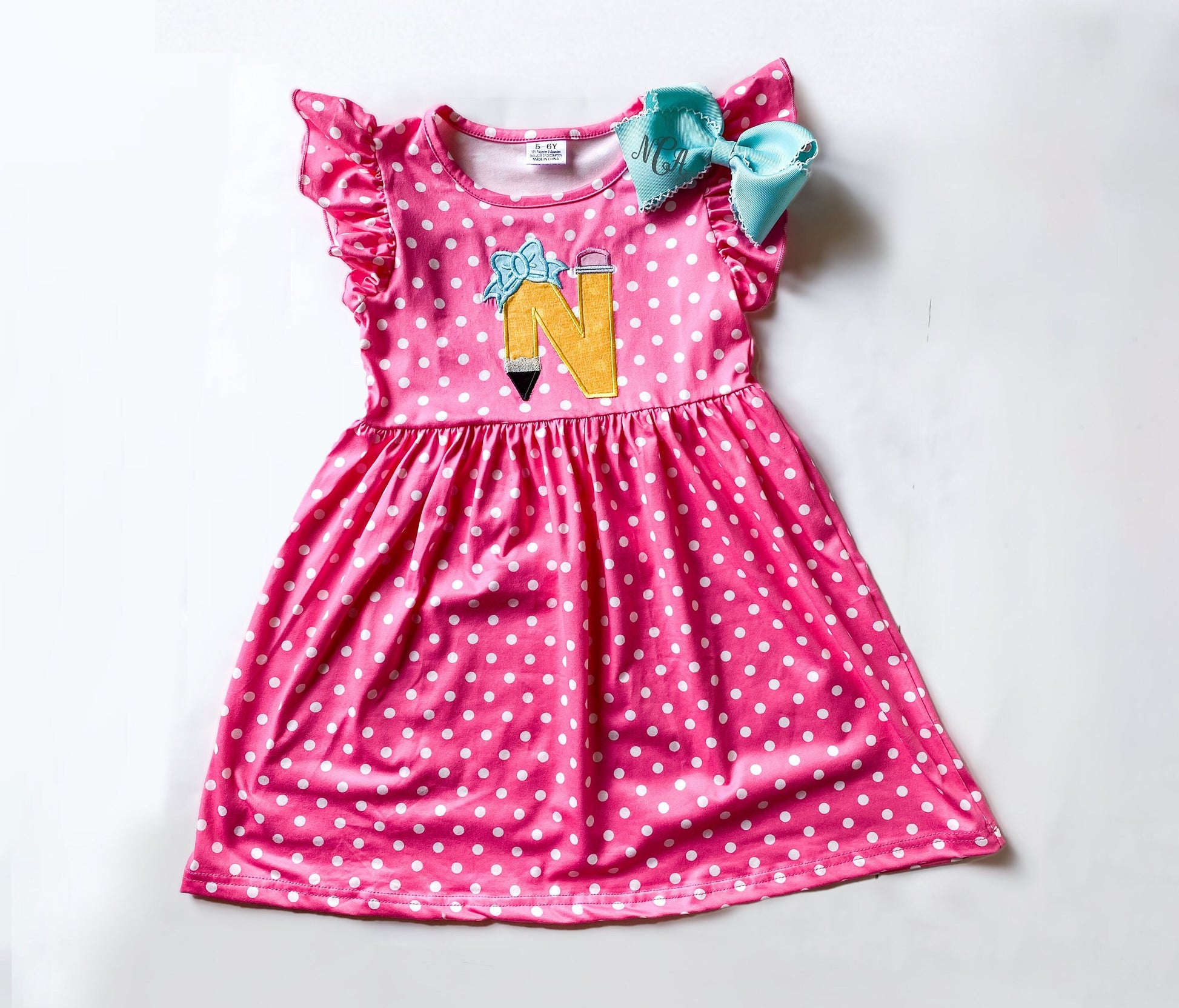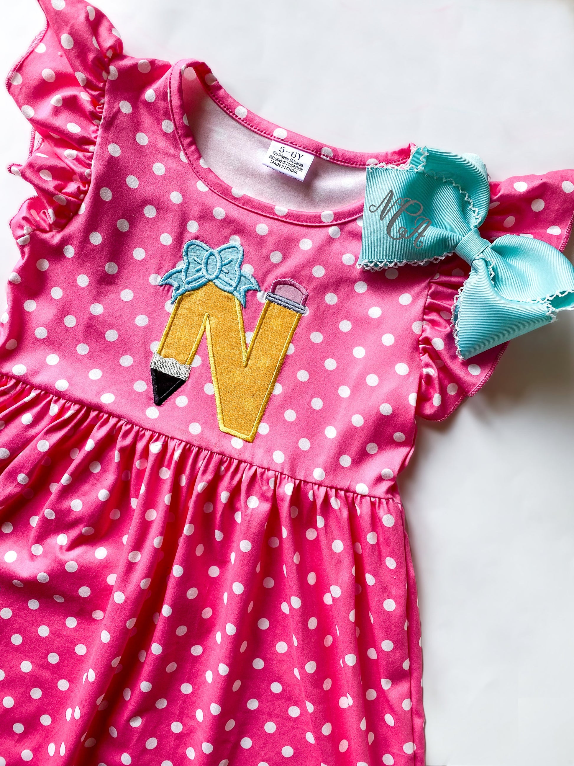 This girl's monogrammed back to school dress and matching bow will make you excited for school!