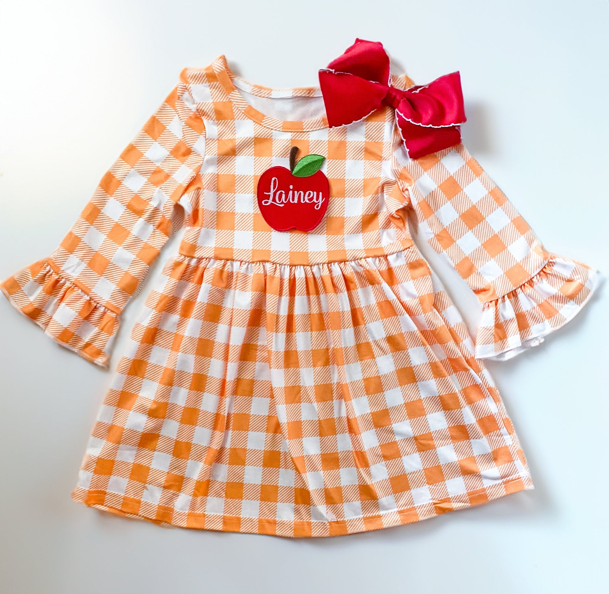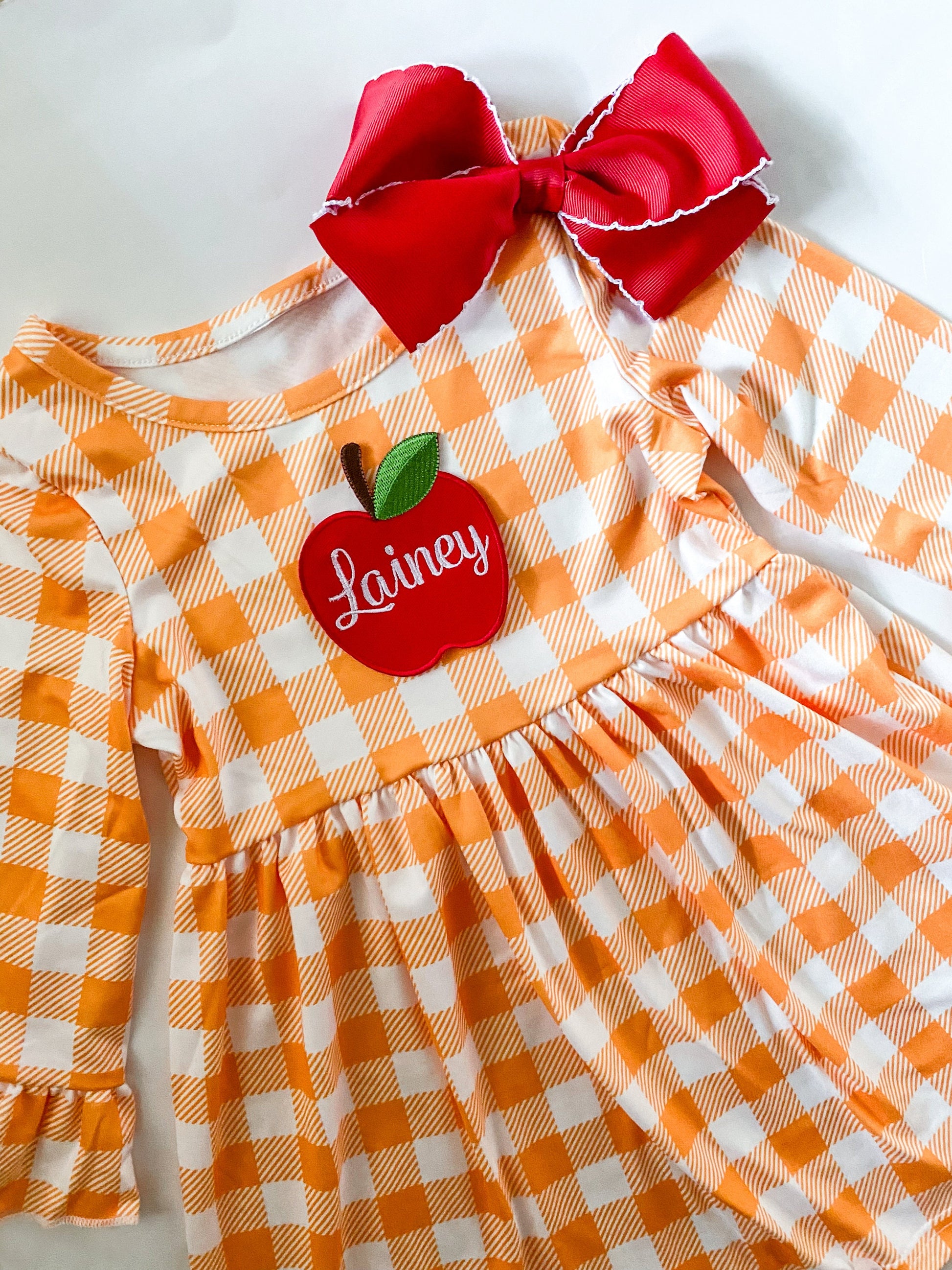 This girl's monogrammed back to school dress and matching bow will make you excited for school!