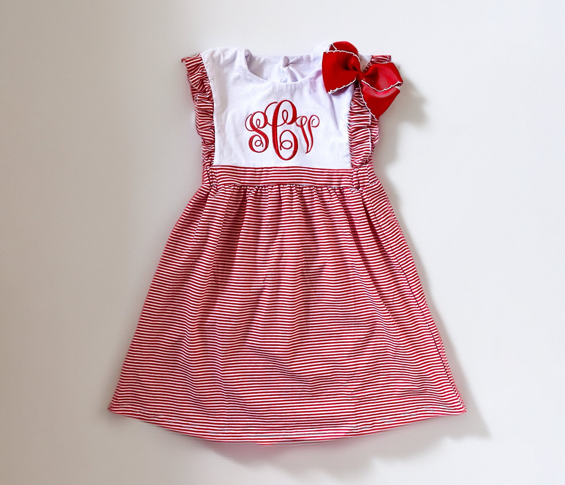 This girl's monogrammed back to school dress and matching bow will make you excited for school!