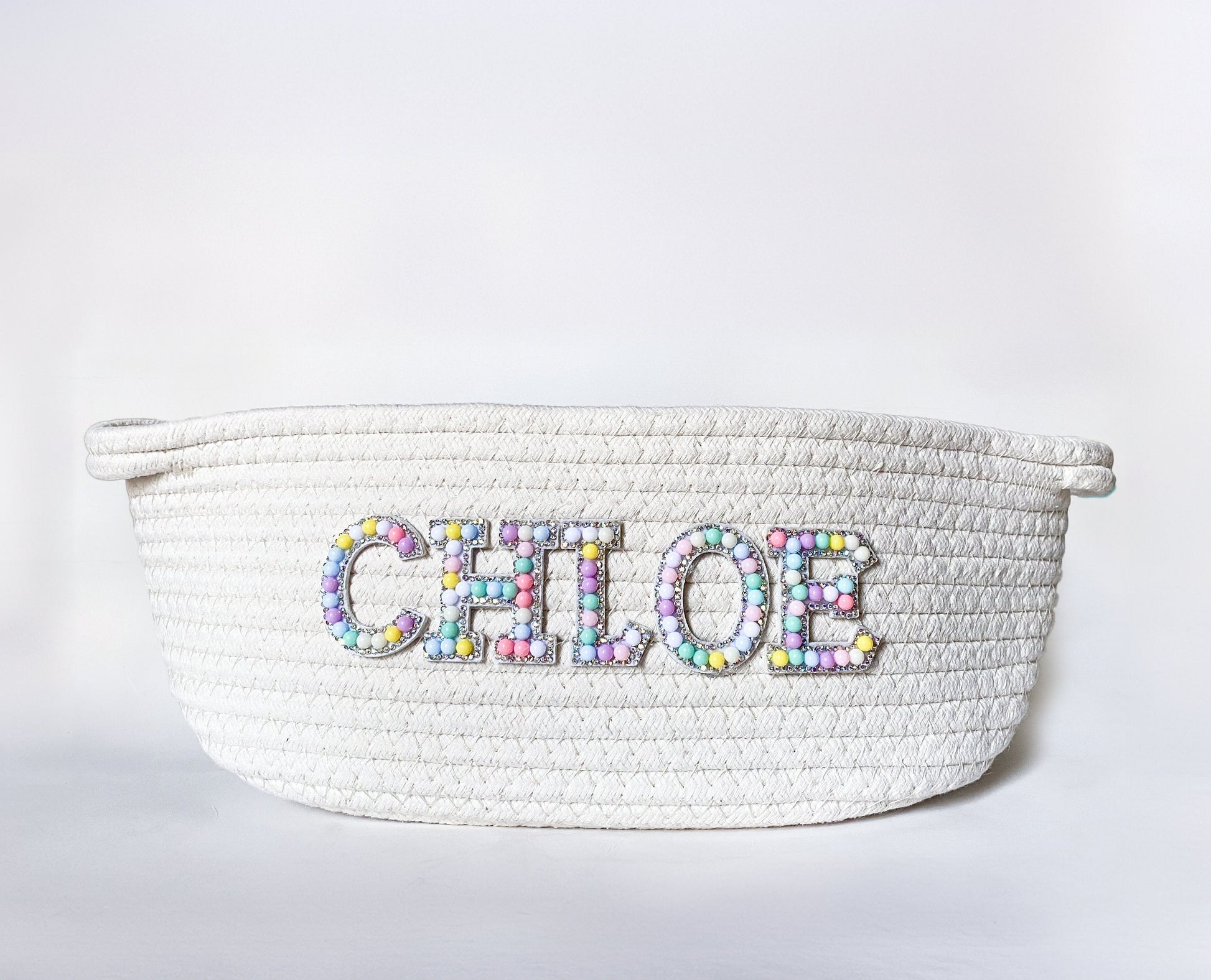 Introducing our lovely girl's monogrammed cotton rope basket with name, perfect for adding a personal touch to any space!