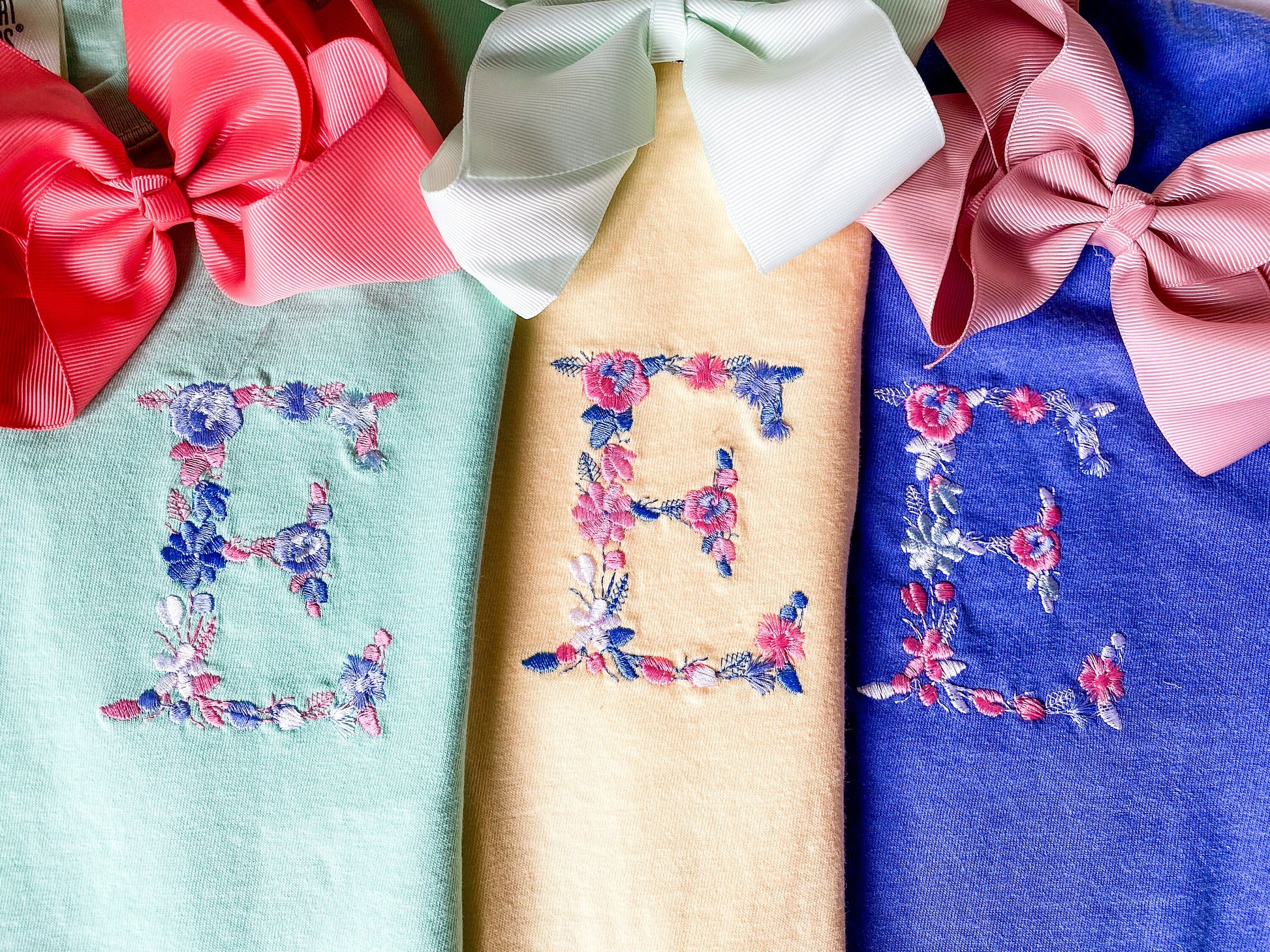 Get your little girl ready for a summer full of fun with this adorable girl's monogrammed embroidered shirt paired with matching shorts.