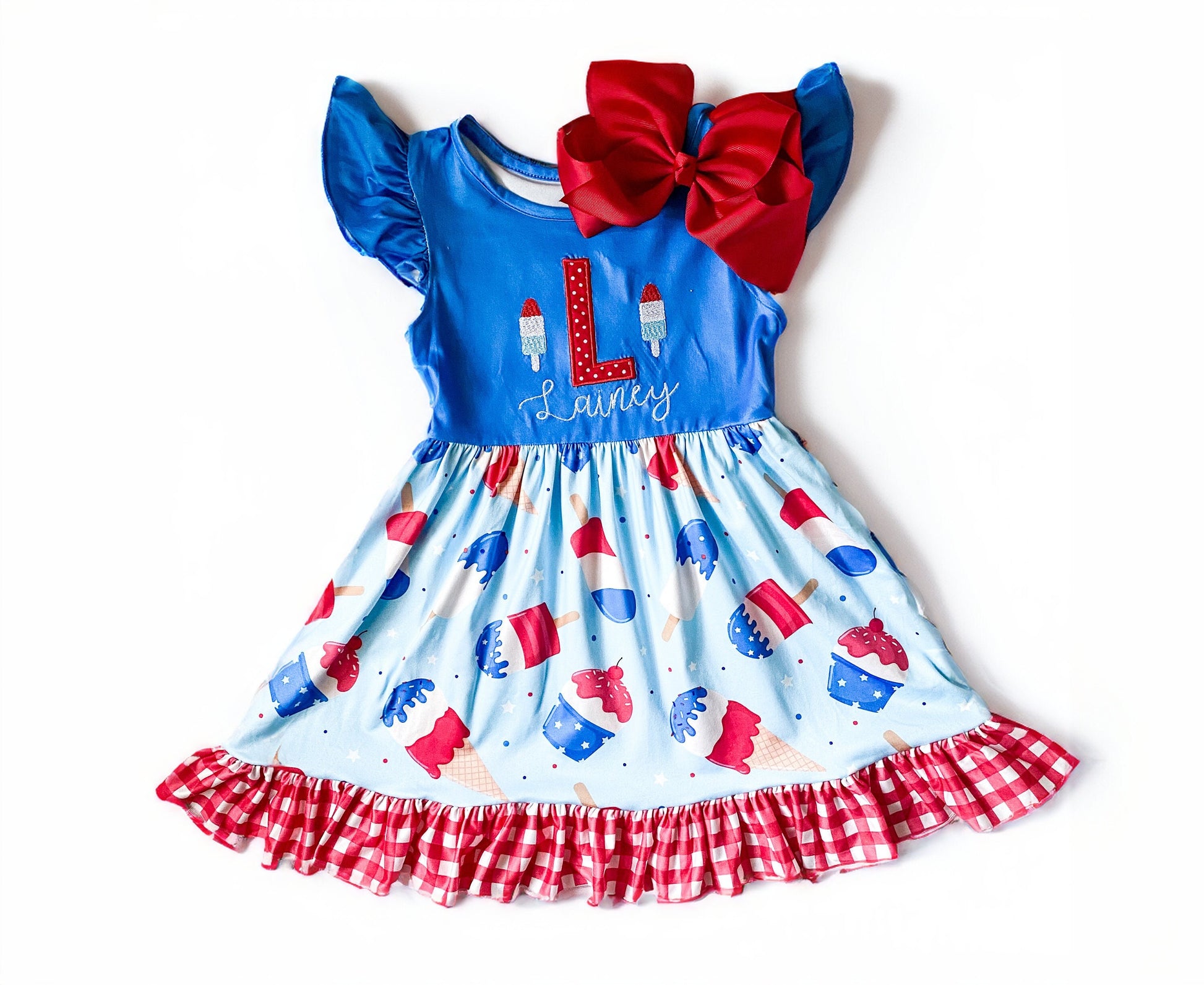 Girl's Monogrammed Patriotic Dress, 4th of July Party Outfit, Customized, Summer, Red White and Blue Popsicle Dress