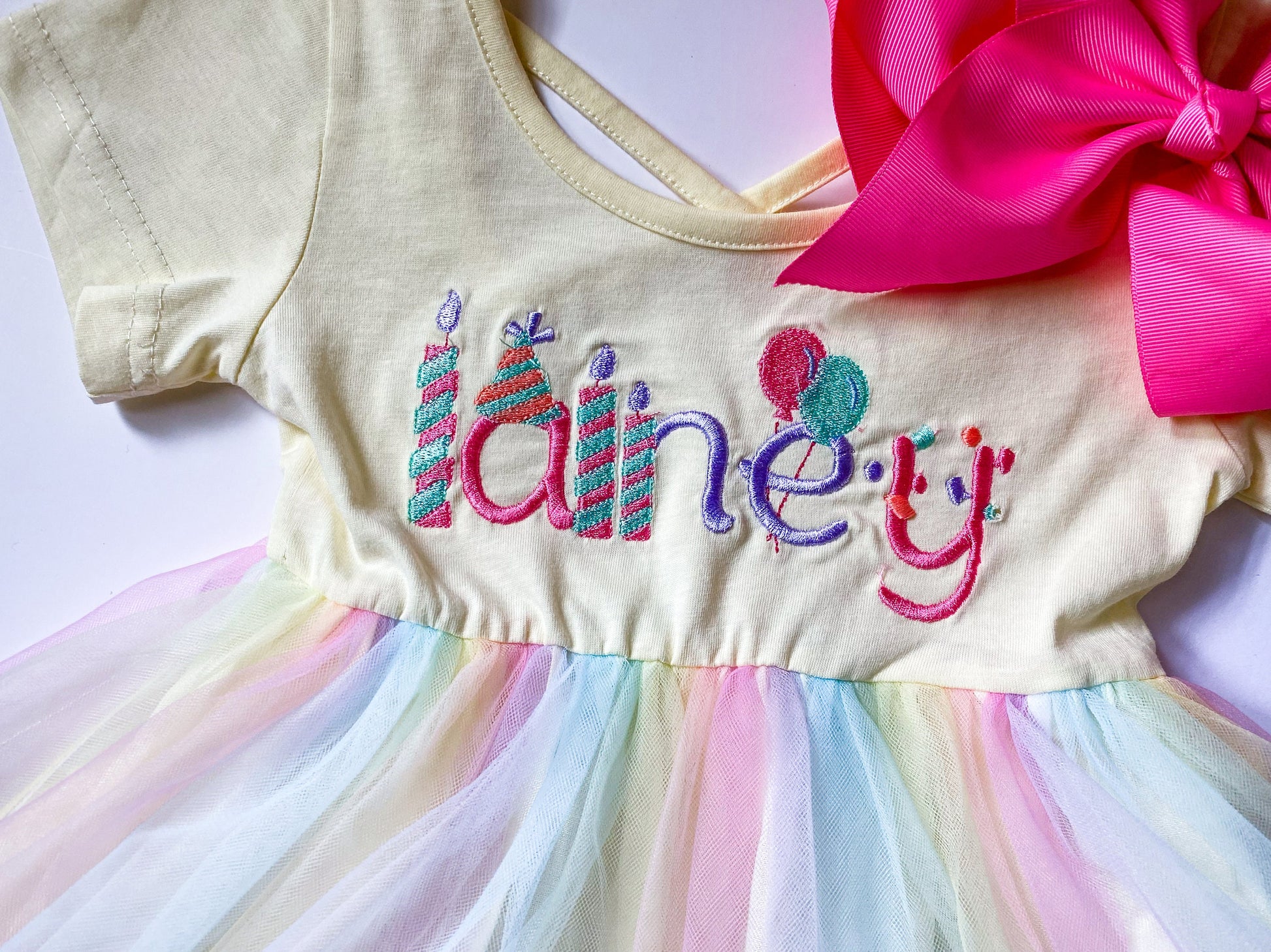 Girl's Personalized Pastel Rainbow Dress, monogrammed toddler dress, birthday dress, birthday outfit, gift, tutu, Colorful