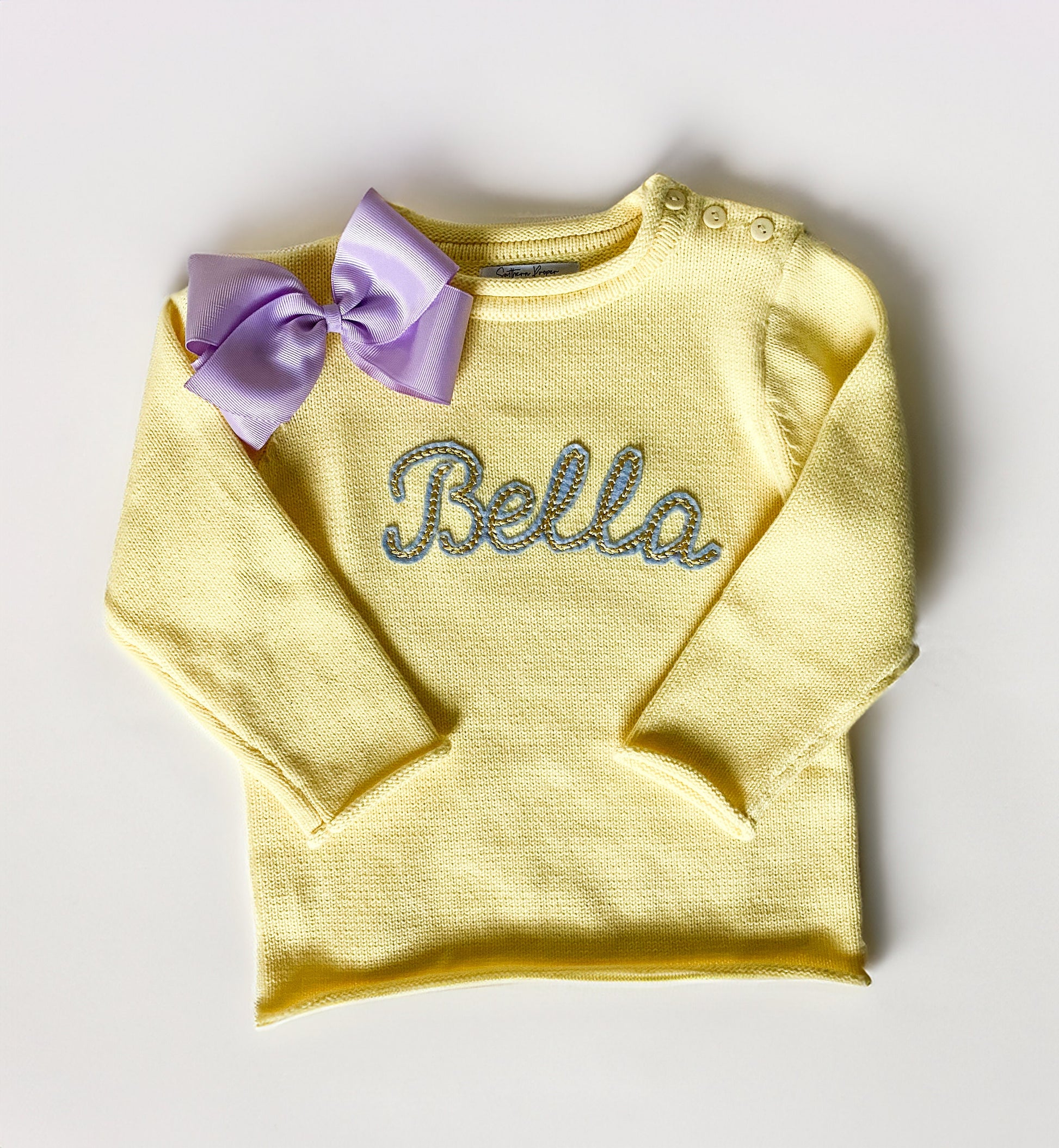 Introducing our 100% cotton roll neck sweaters! This features a custom felted name, each name is trimmed and tended to by hand. This high quality, customized sweater is perfect for keeping your little one warm and stylish in every season. Not only is it stylish, but it's also a great gift for any special occasion. Why wait any longer? Order your monogrammed felted name 100% cotton rollneck sweater today!