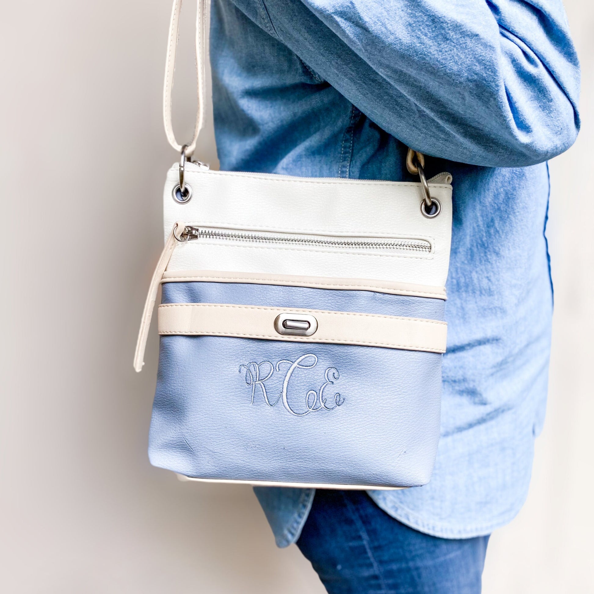 Mother's Day, Embroidered Monogram Colorblocked Crossbody Purse, Teacher Gift,