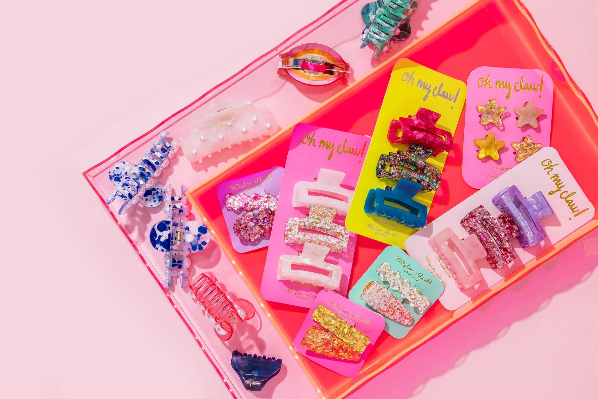 Add unique hair accessories to your store with our best-selling claw clips! This fun trio of pastels and confetti is perfect for gifting! The confetti is hand-sprinkled into the acrylic, which means no shedding. Because of this unique process, no two pieces will be exactly alike.